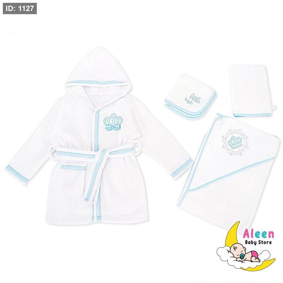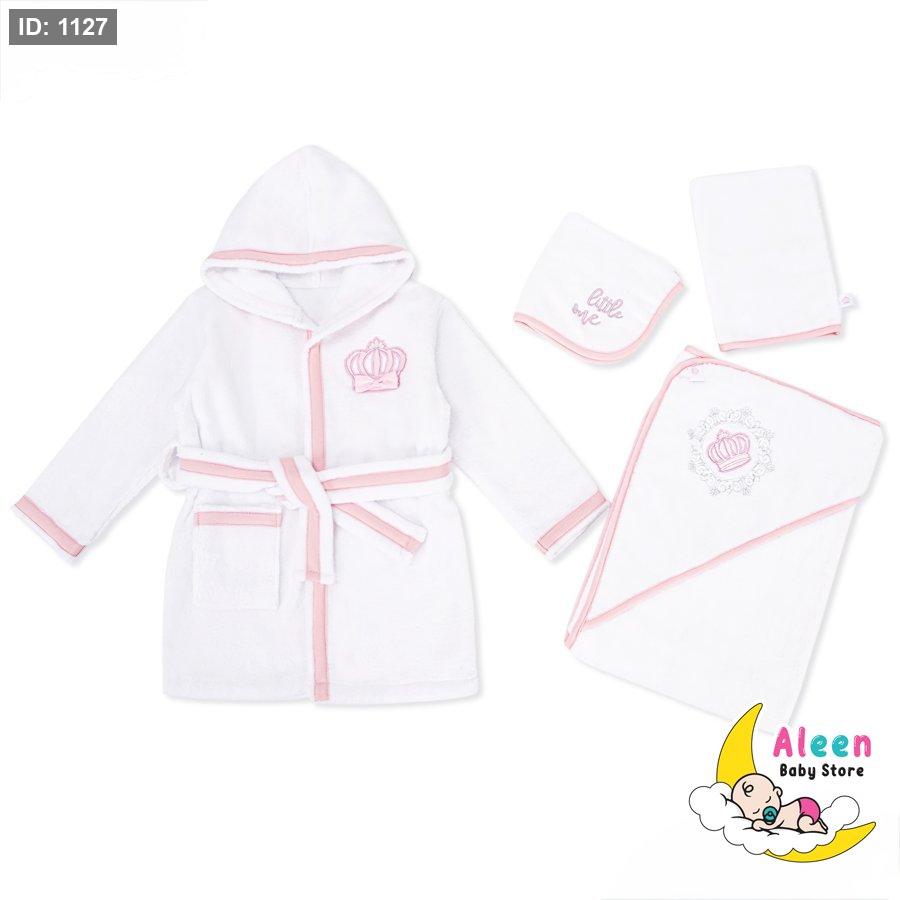 🛁💛 طقم حمام بيبي (برنص + حزام + منشفة + ليفة)