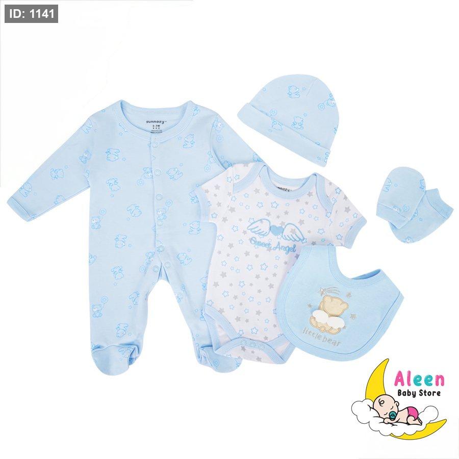 طقم قطني ناعم مصنوع من قطن 100٪ طبيعي، لطيف جداً على بشرة المولود الحساسة وما بيسبب تحسس أو تهيّج 💛