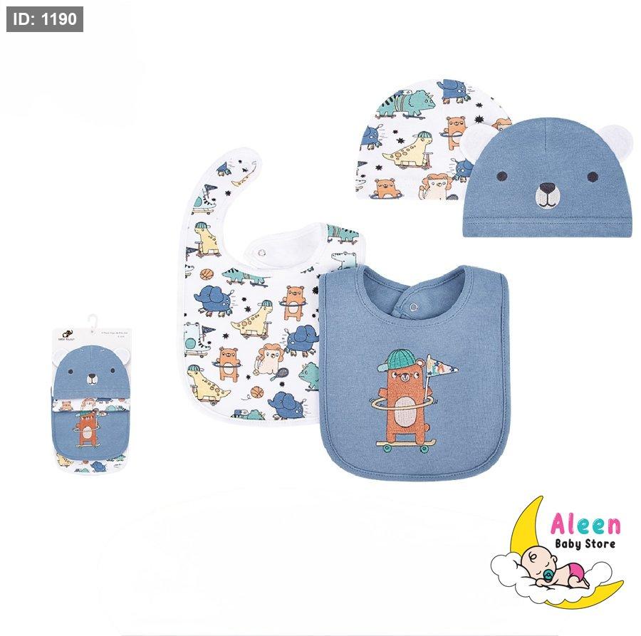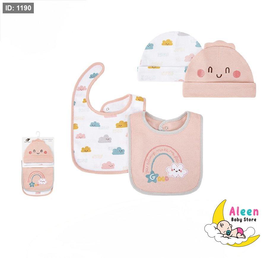 طقم يتكون من طاقيتين ومريلتين باشكال مميزة لطفلك