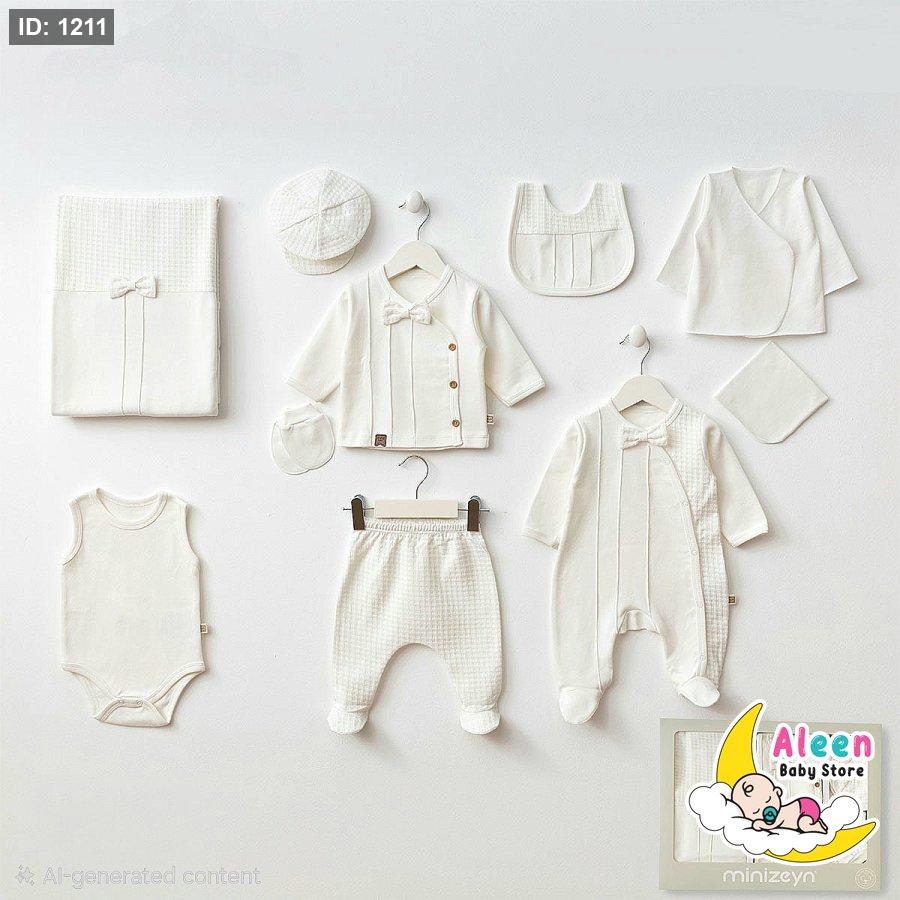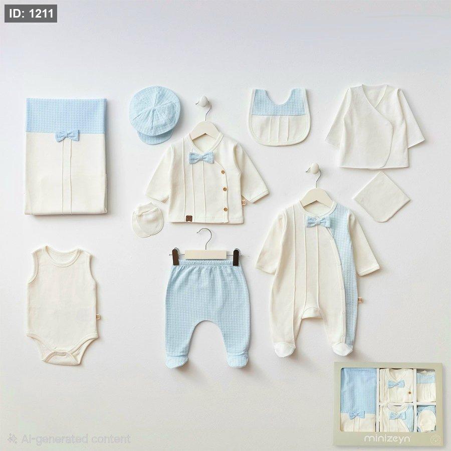 طقم استقبال بيبي 10 قطع من أفخم الماركات التركية، مصنوع من قطن 100% طبيعي عالي الجودة، ناعم جداً على بشرة المولود الحساسة وما بيسبب أي تحسس أو تهيّج �