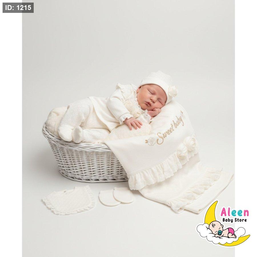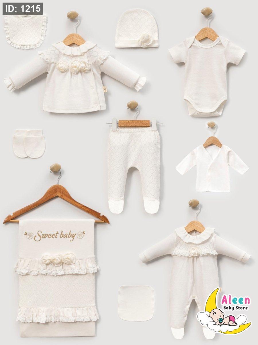طقم استقبال بيبي 10 قطع من أفخم الماركات التركية، مصنوع من قطن 100% طبيعي عالي الجودة، ناعم جداً على بشرة المولود الحساسة وما بيسبب أي تحسس أو تهيّج �