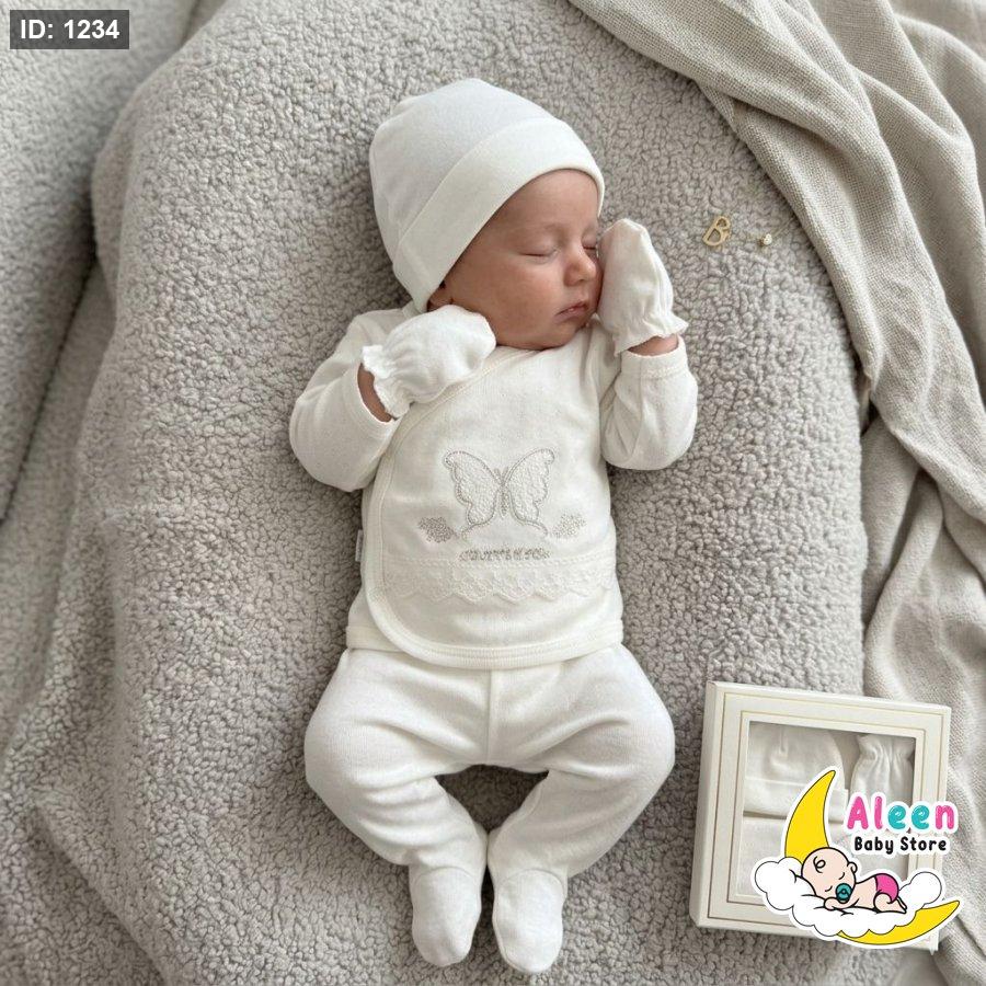 بوكس طقم بيبي 5 قطع فراشة أبيض