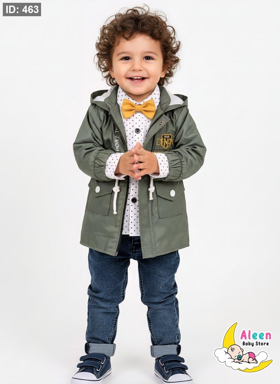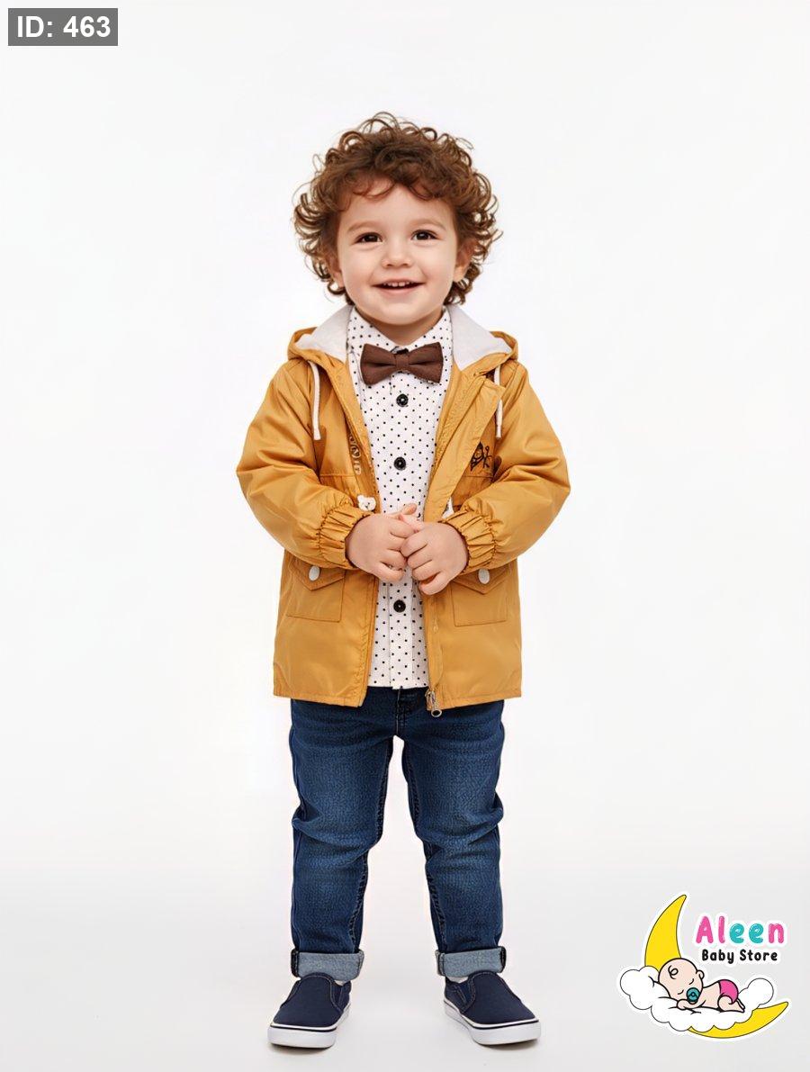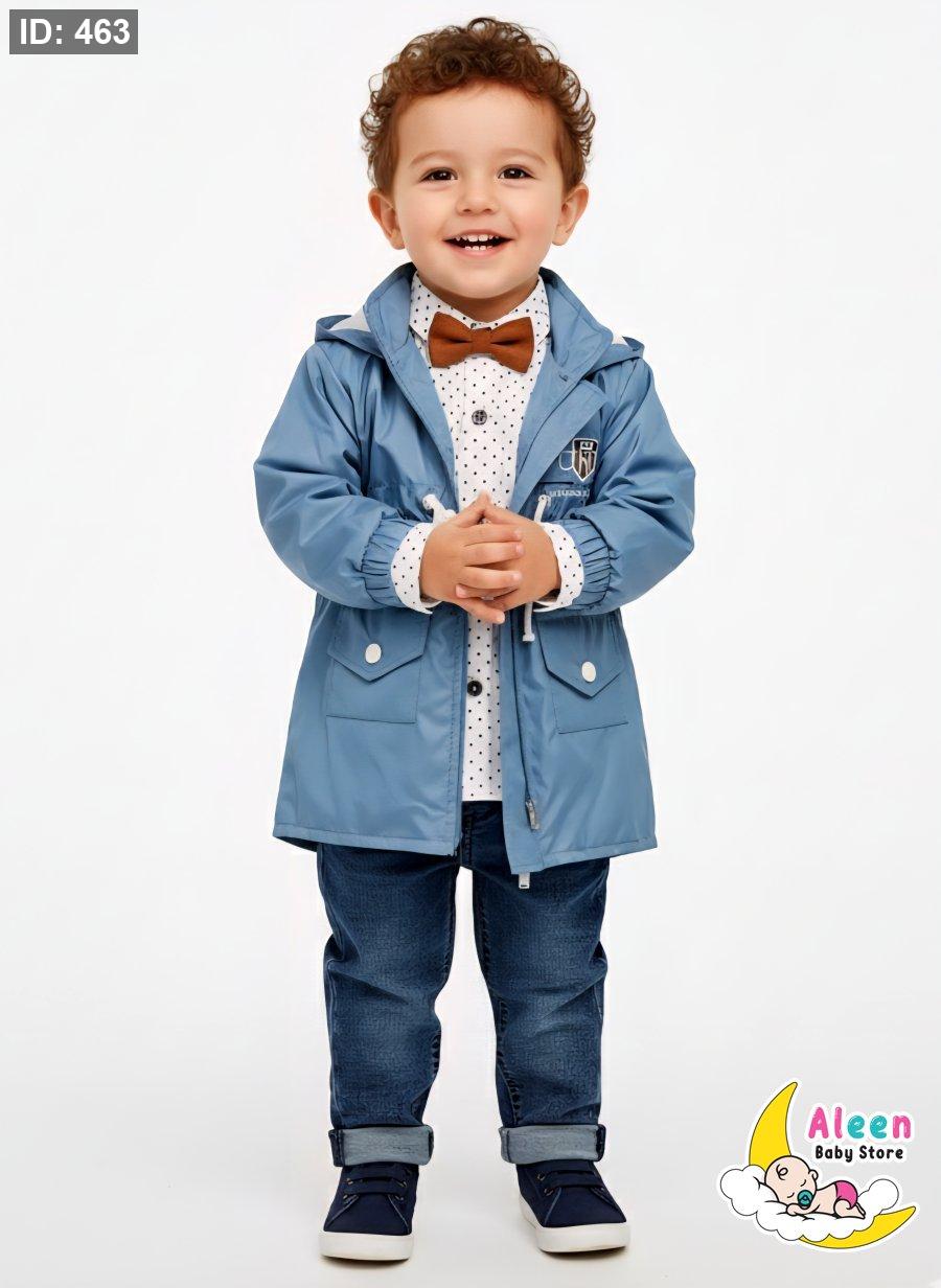 طقم 4 قطع جكيت وقميص مع ببيون وبنطلون جينز