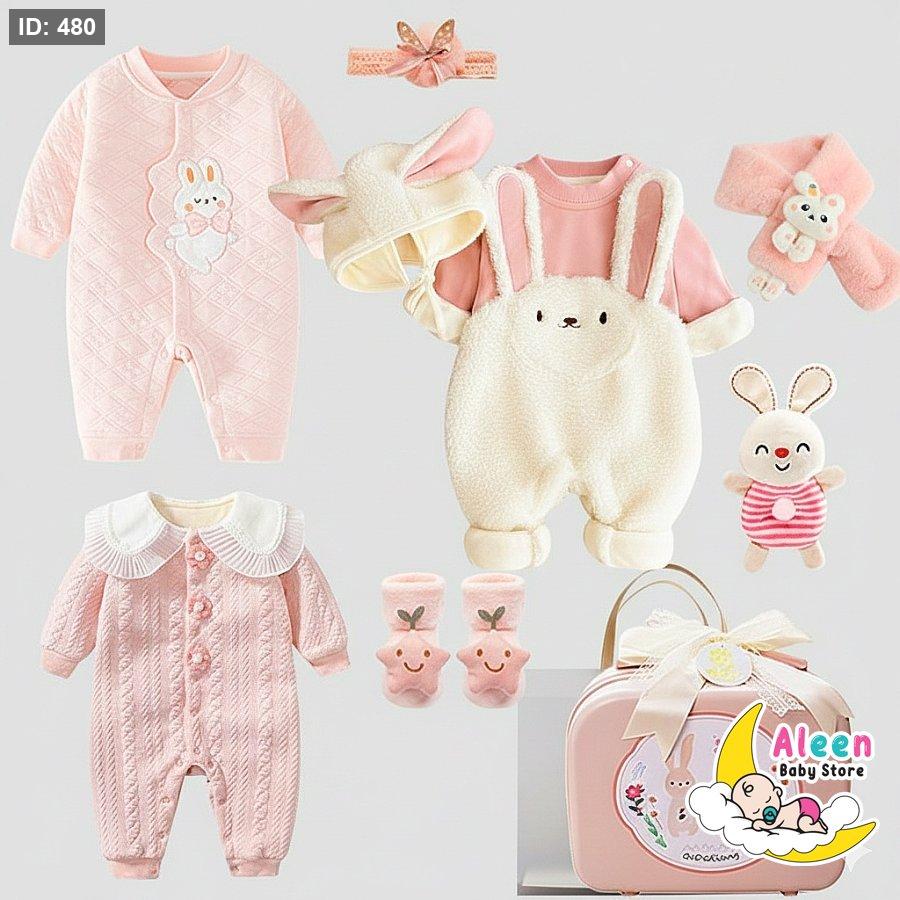 أفرول شتوي مبطن: (سلوبيت) بتصميم أرنب مطرز، مزود بأزرار كبس لسهولة التغيير.