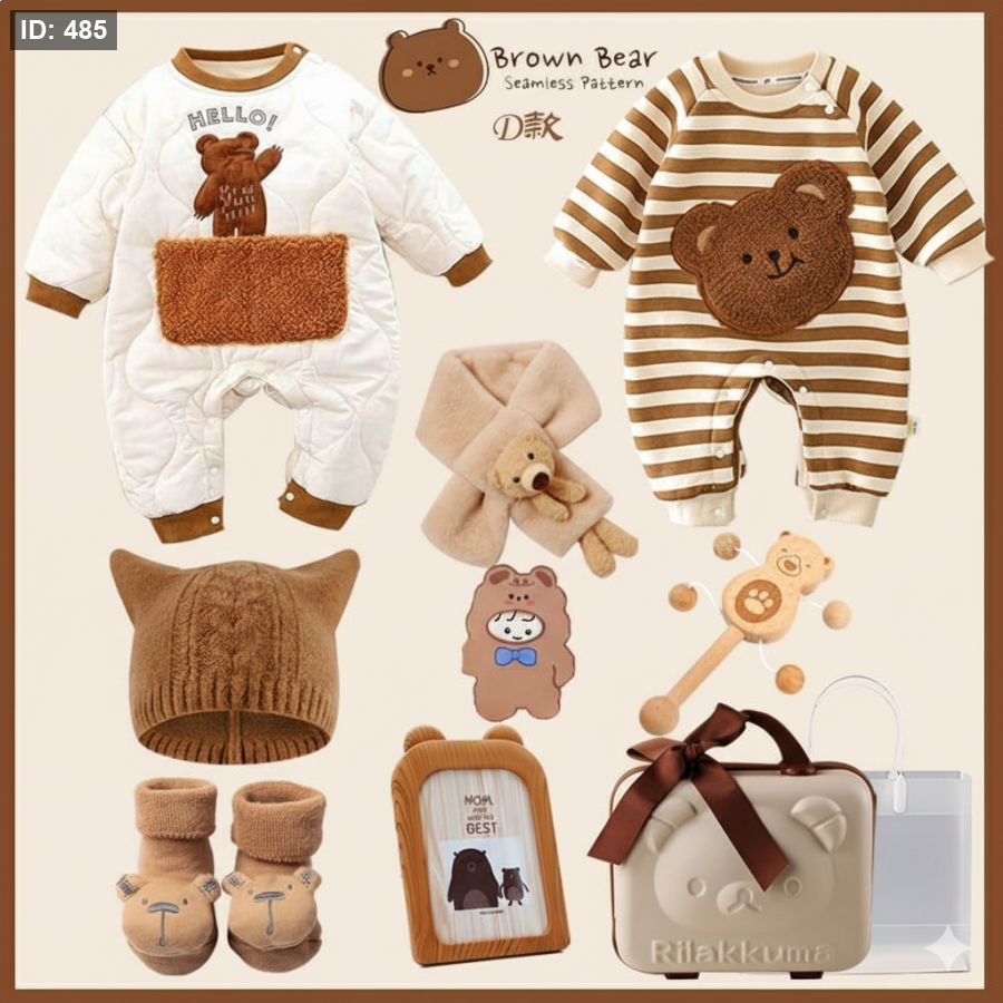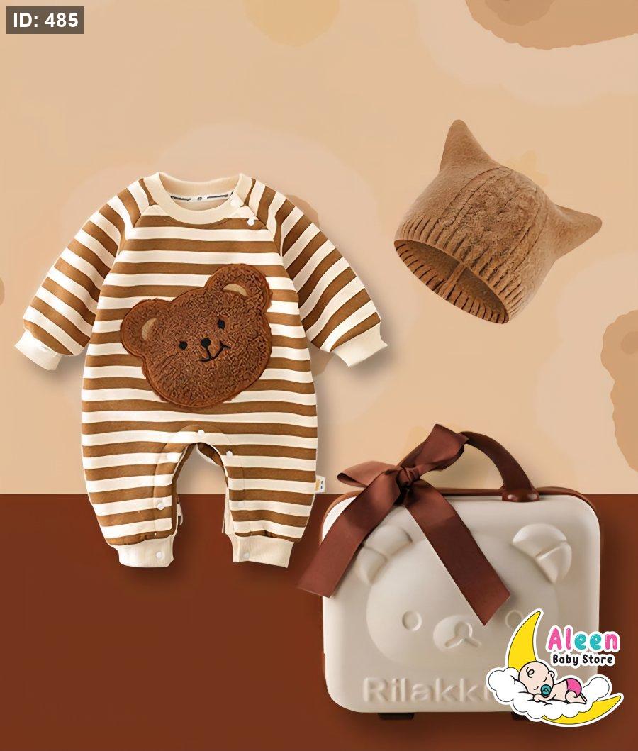 طقم بيبي كامل بستايل الدب البني – طقم فاخر ومتكامل للمواليد