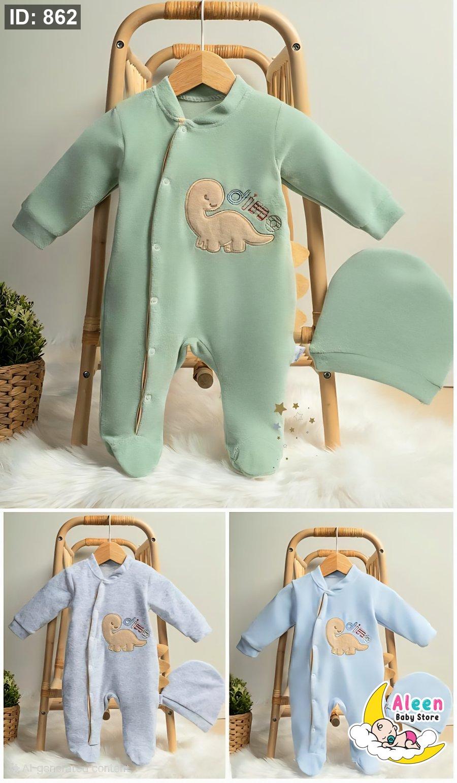 🌙✨ أفرهول بيبي مخمل شتوي مع طاقية