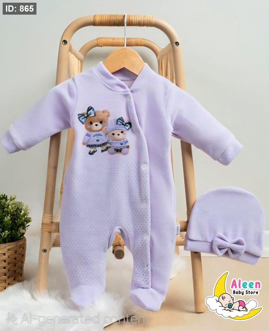 🌙✨ أفرهول بيبي مخمل شتوي مع طاقية