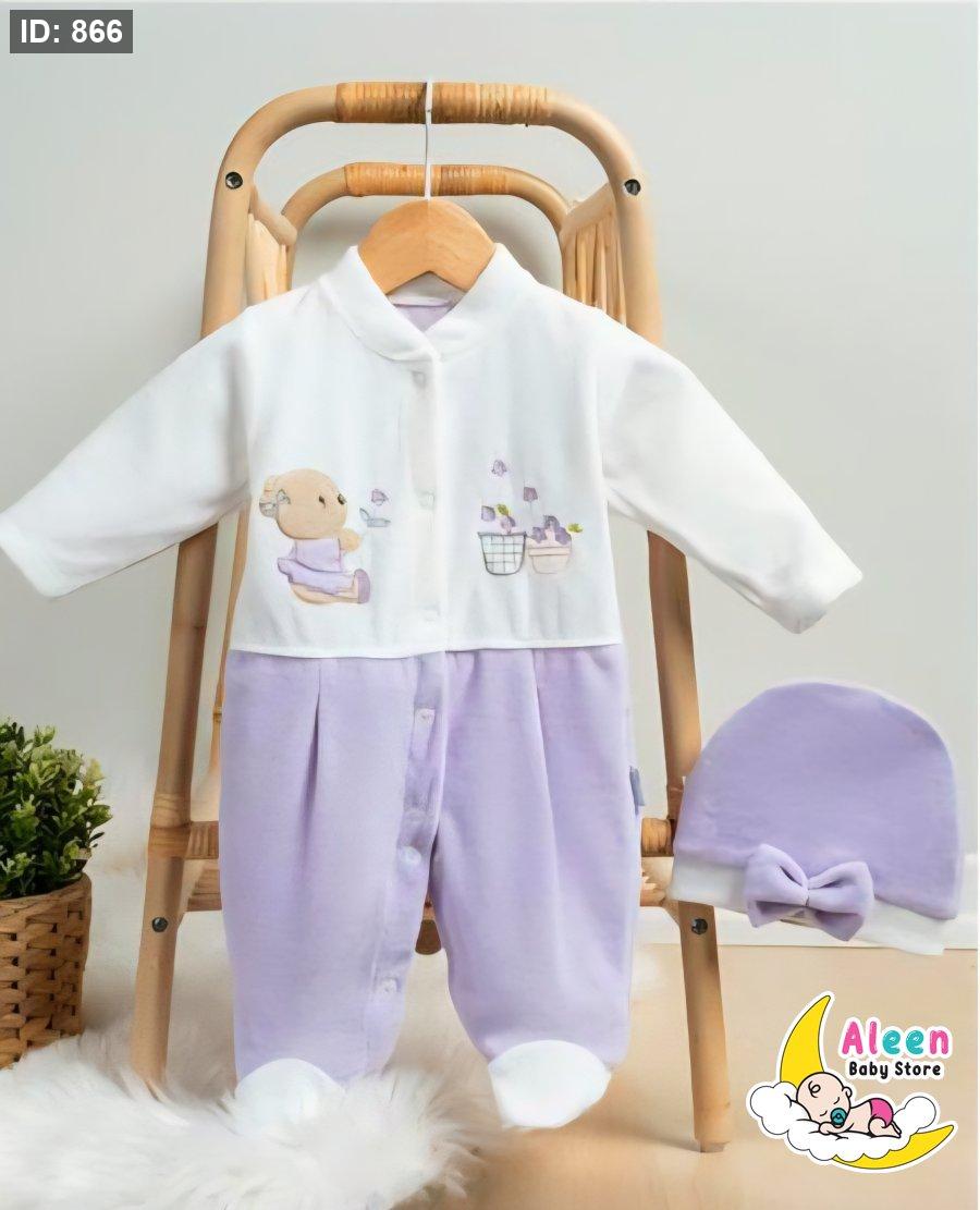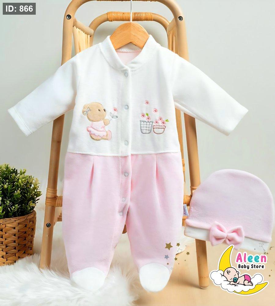 🌙✨ أفرهول بيبي مخمل شتوي مع طاقية