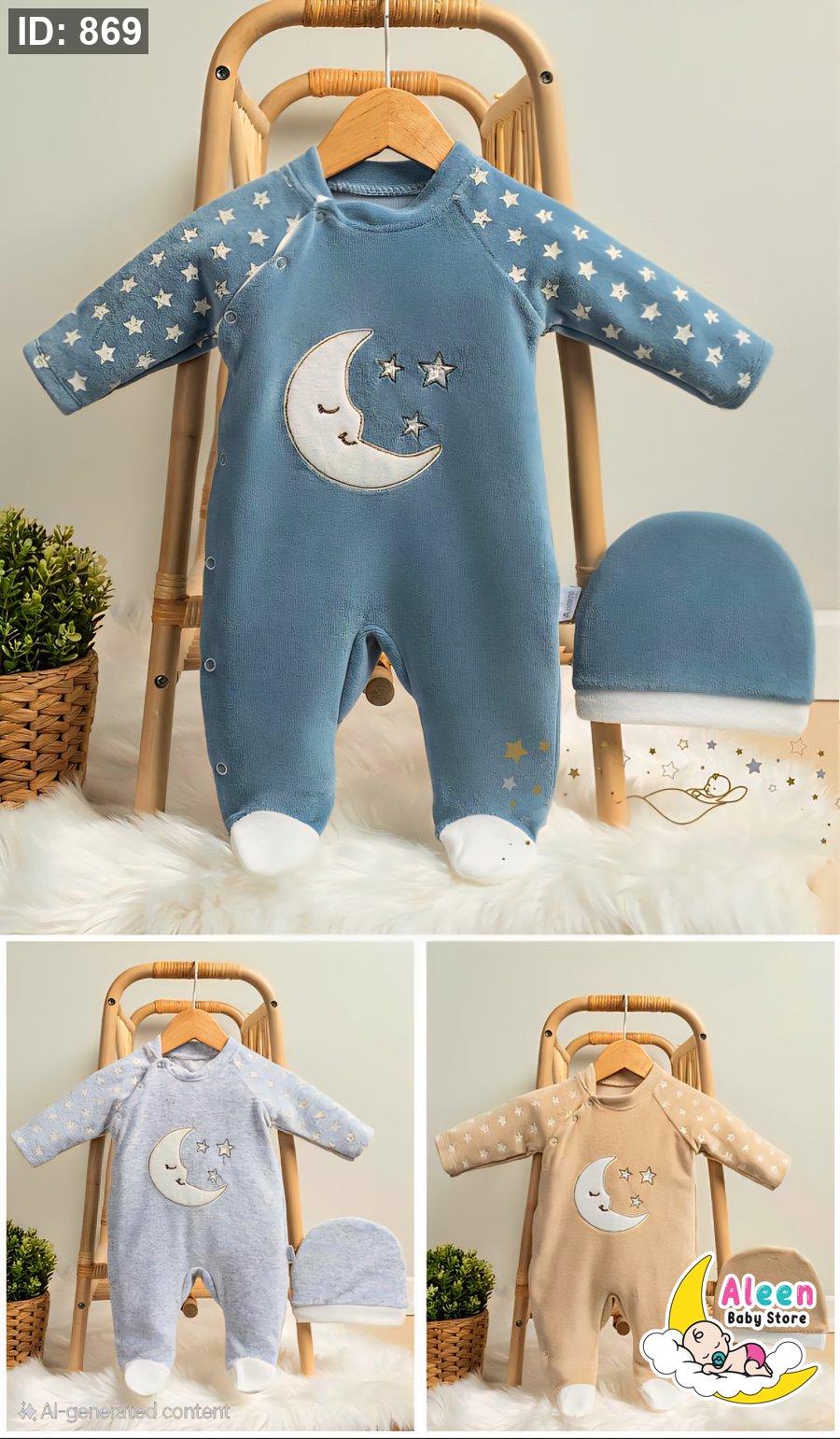 🌙✨ أفرهول بيبي مخمل شتوي مع طاقية