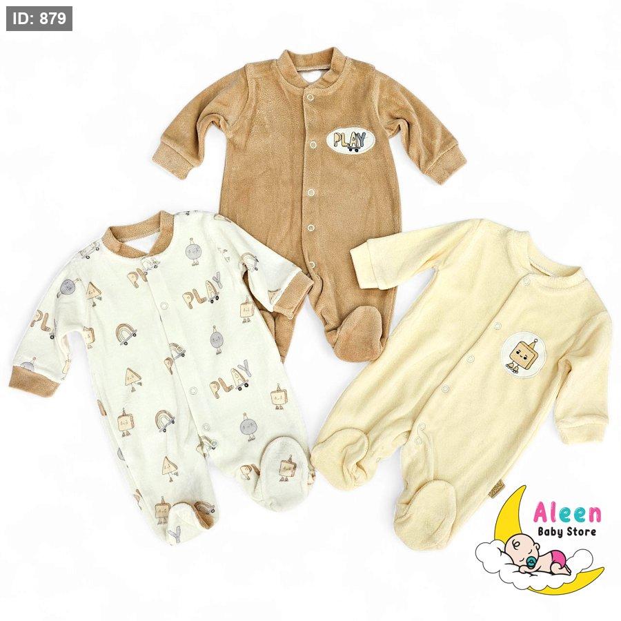 الطقم مكوّن من 3 أفرهولات بألوان وتصاميم هادئة وراقية تناسب حديثي الولادة، عملية وسهلة اللبس مع كبسات أمامية لراحة الأم والطفل.