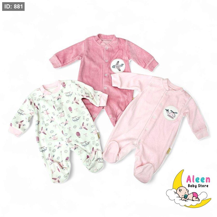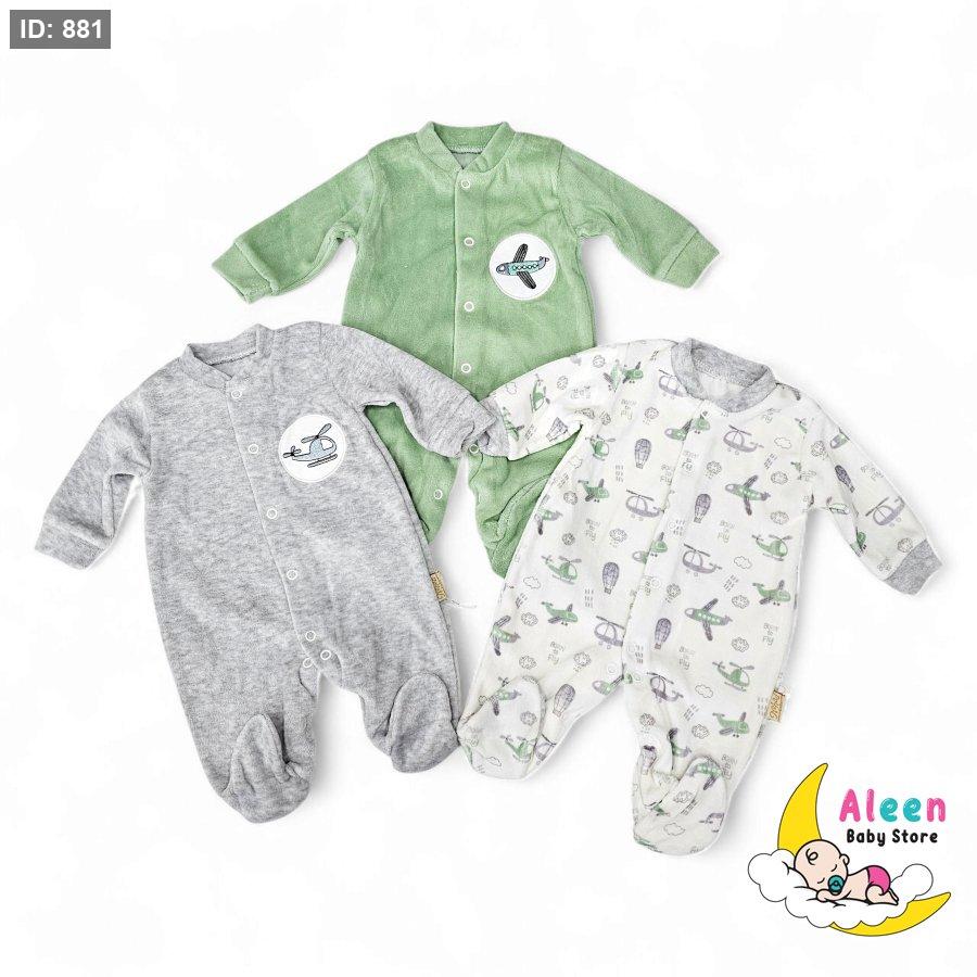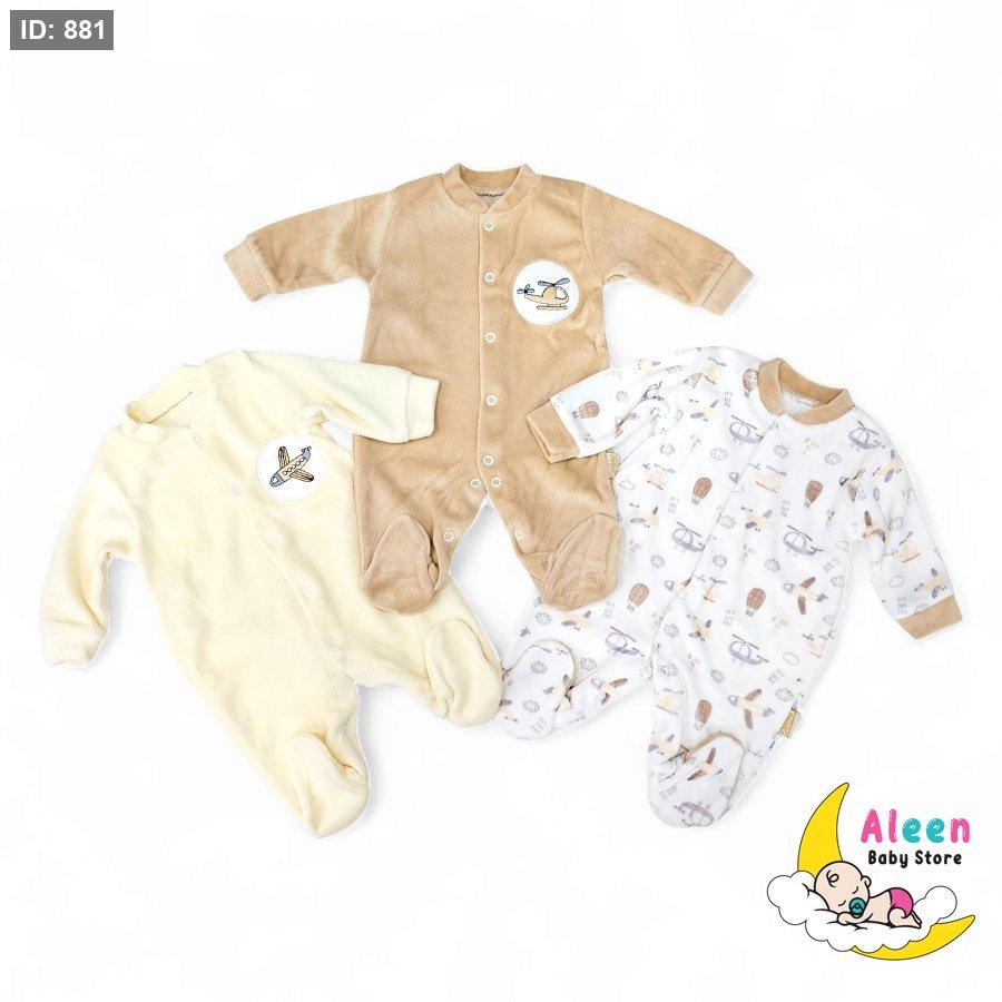 الطقم مكوّن من 3 أفرهولات بألوان وتصاميم هادئة وراقية تناسب حديثي الولادة، عملية وسهلة اللبس مع كبسات أمامية لراحة الأم والطفل.