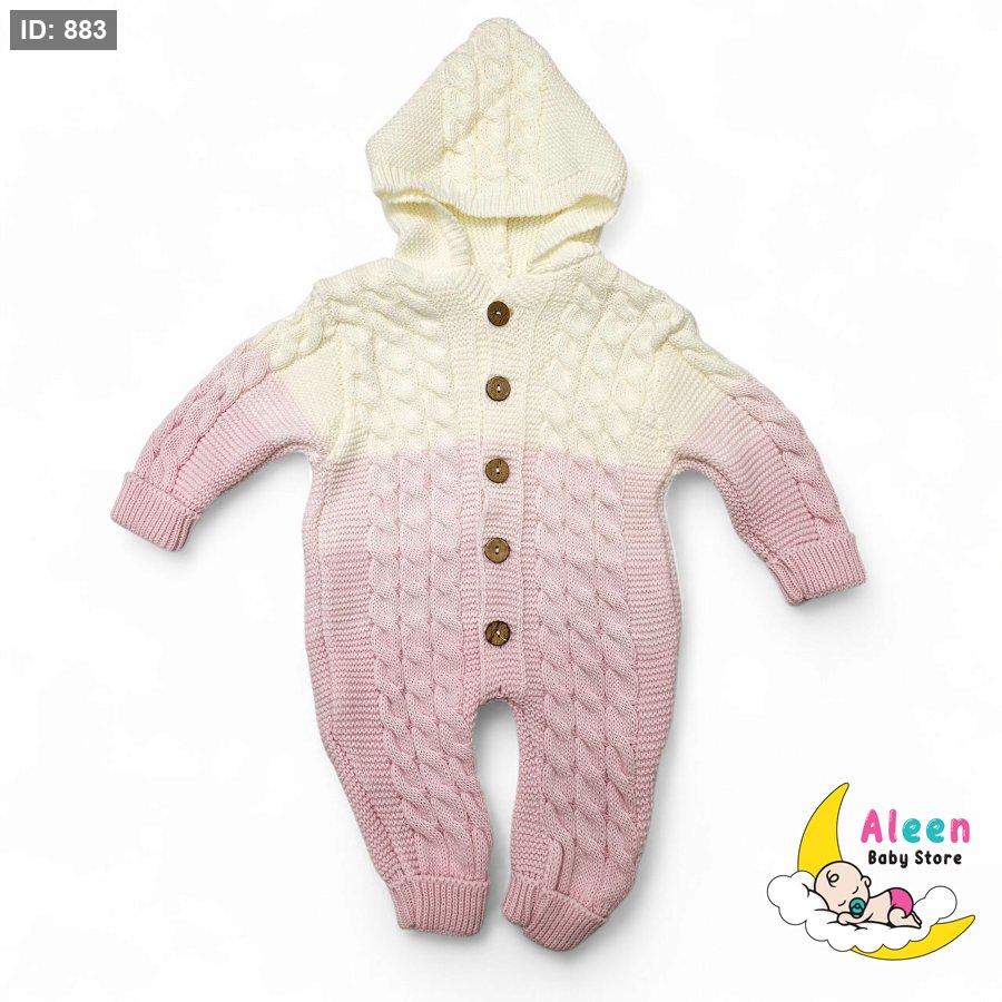 أفرهول أنيق من الصوف المحاك بلمسة دافئة وناعمة، يتميز بتصميم مموج بدرجات متناغمة تضيف لمسة عصرية ومميزة لإطلالة البيبي.