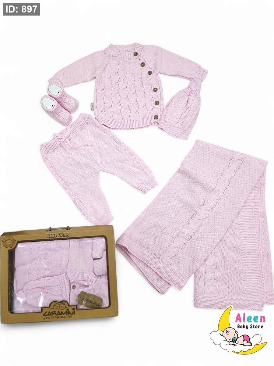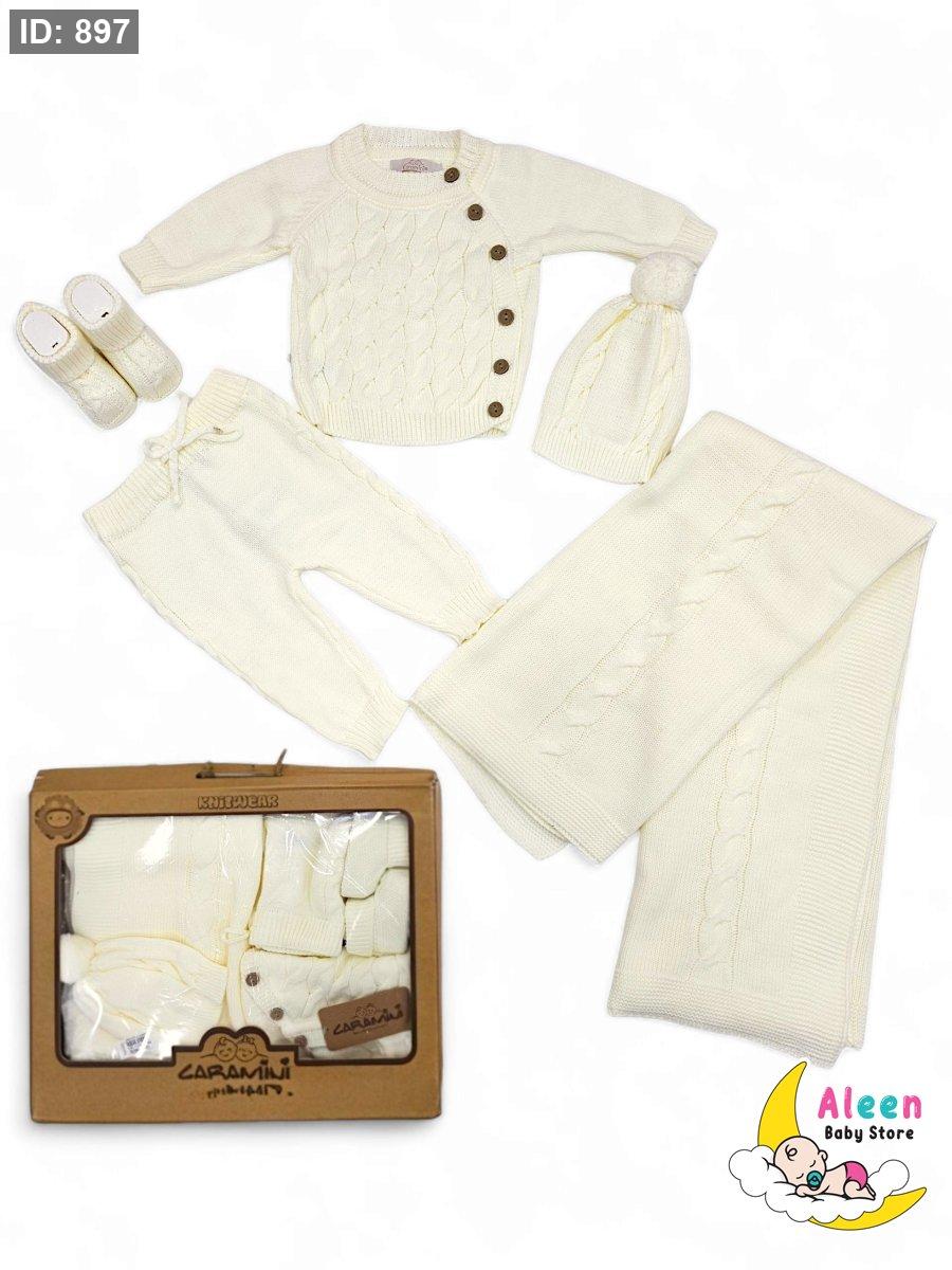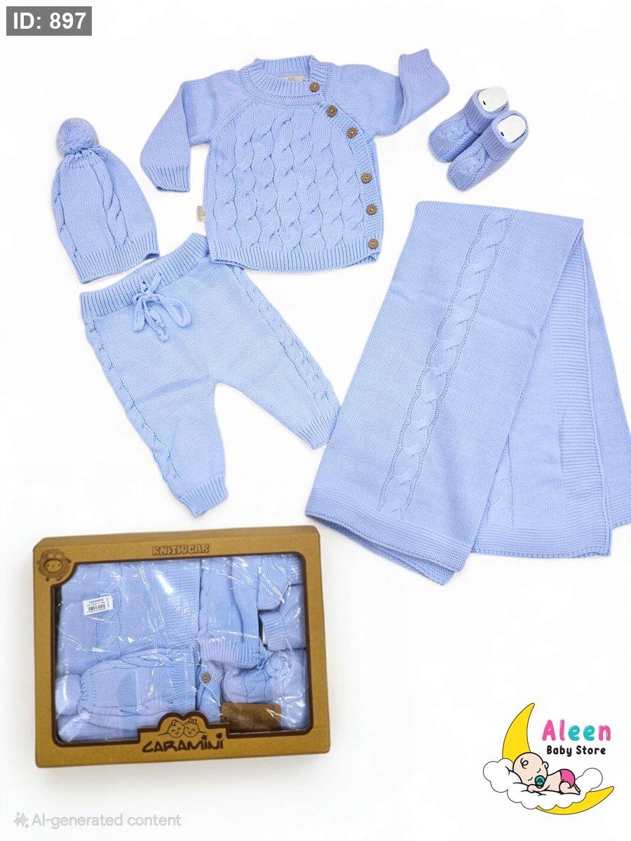 طقم صوف فخم وناعم بخلي البيبي دافي وأنيق بأيام الشتاء الباردة.