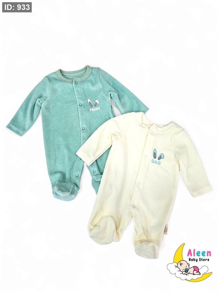 طقم أفرهولين مخمل ناعم مخصص لحديثي الولادة، عملي ومريح للاستخدام اليومي. التصميم بسيط بلمسة لطيفة وتطريز ناعم على الصدر، مع كبسات أمامية كاملة لتسهيل اللبس وتغيير الحفاظ. الخامة دافئة ومناسبة لأيام الشتاء، مع أكمام وأقدام مغلقة لضمان راحة ودفء البيبي.