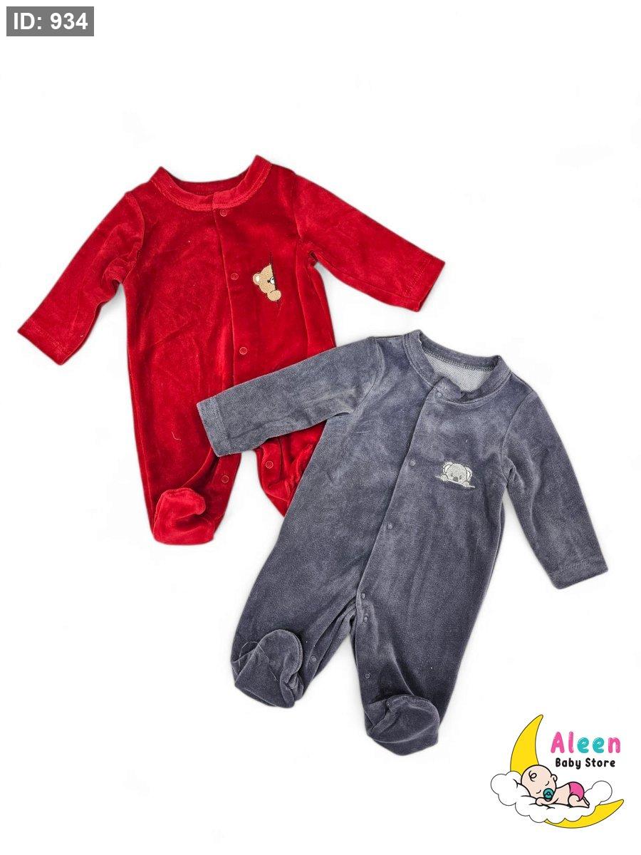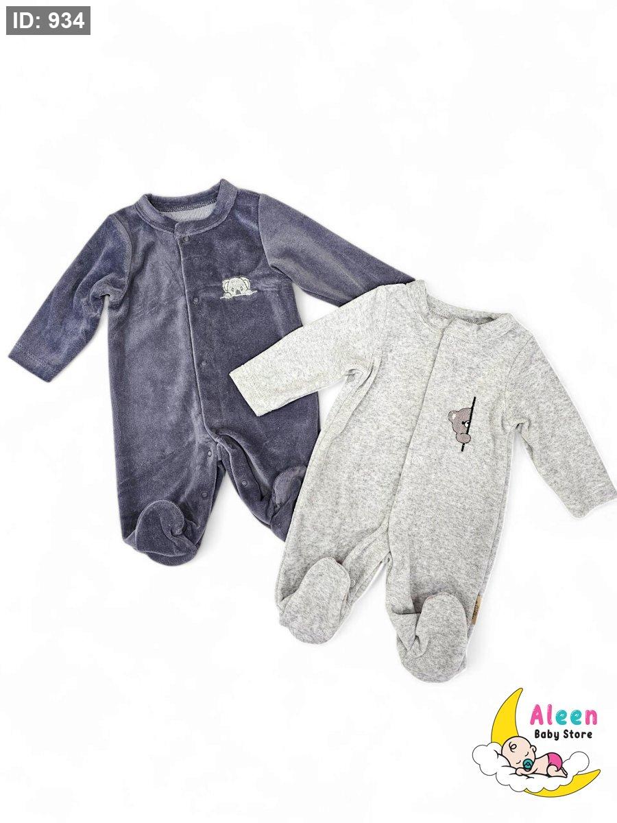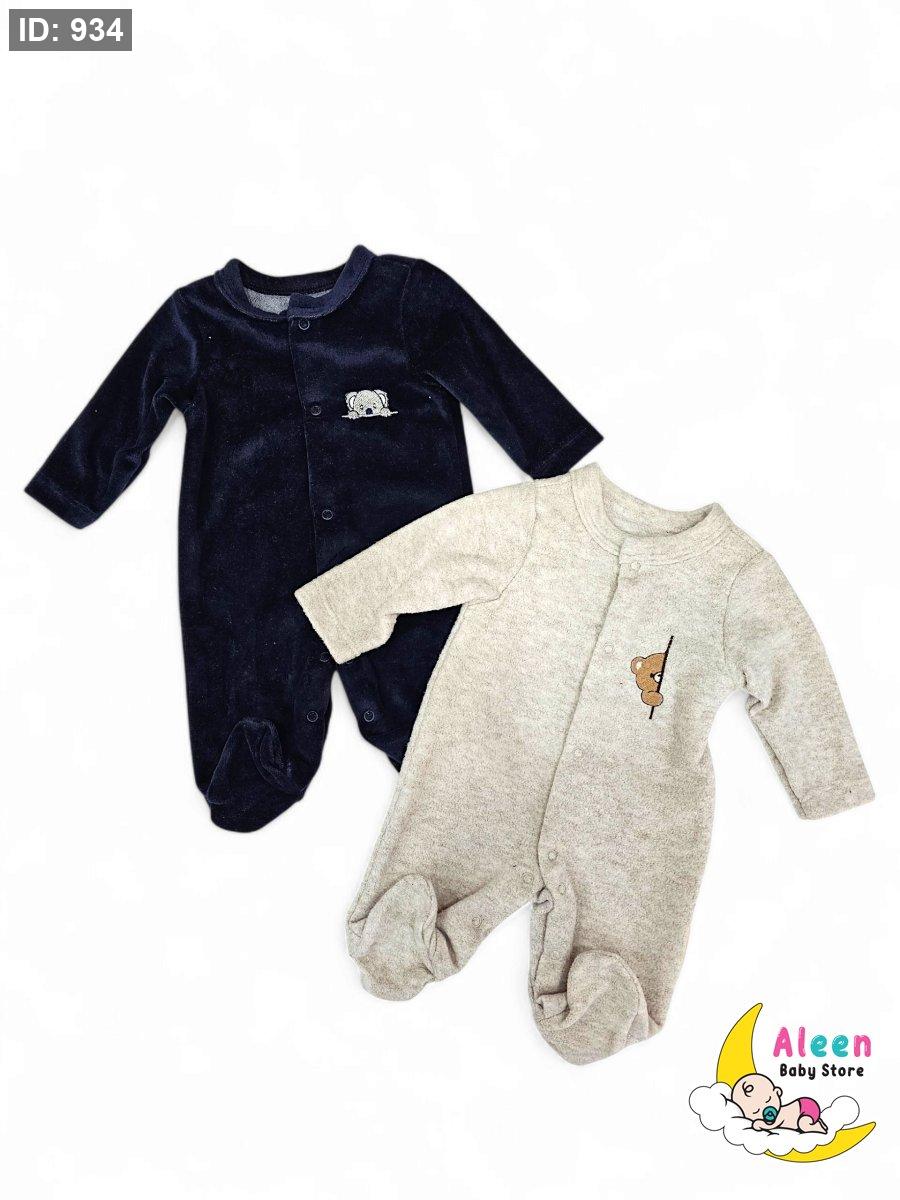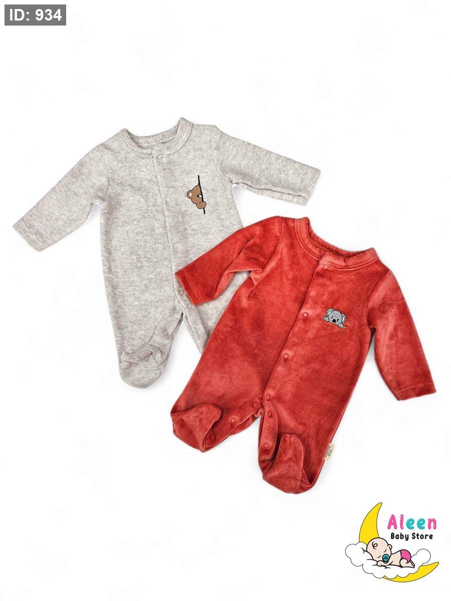 طقم أفرهولين مخمل ناعم مخصص لحديثي الولادة، عملي ومريح للاستخدام اليومي. التصميم بسيط بلمسة لطيفة وتطريز ناعم على الصدر، مع كبسات أمامية كاملة لتسهيل اللبس وتغيير الحفاظ. الخامة دافئة ومناسبة لأيام الشتاء، مع أكمام وأقدام مغلقة لضمان راحة ودفء البيبي.