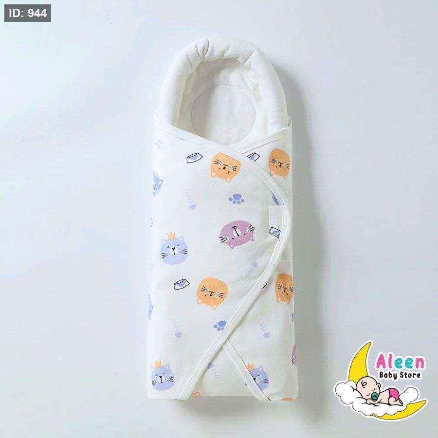 كوفلية عملية ومريحة مصممة لتلفيف البيبي بلطف ومنحه إحساس الأمان والدفء، مع مخدة رأس ناعمة تساعد على دعم رأس الطفل بشكل مريح.